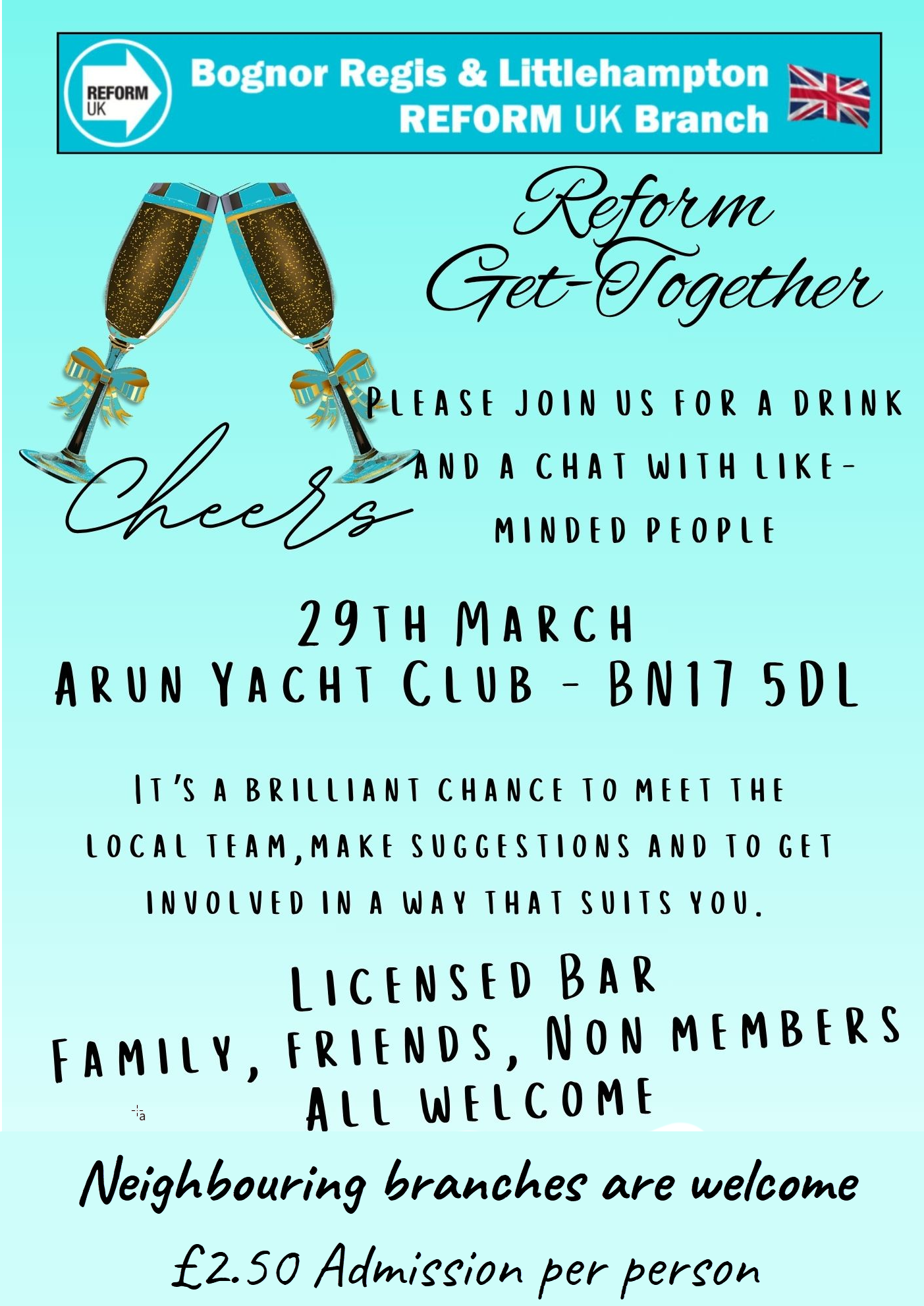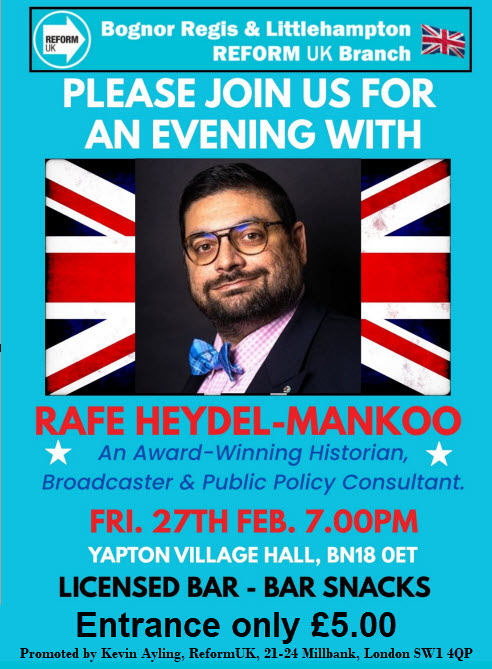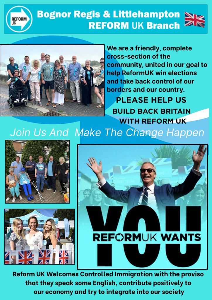We plan on holding weekly street stalls primarily in Bognor, Littlehampton and Rustington and then as our team grows, we will be able to cover a larger area of our constituency. There will be a good supply of our latest flyer and other Reform literature.